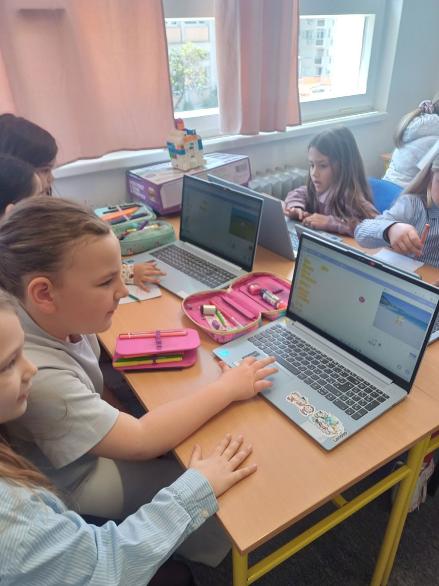 U četvrtak, 23.04, učenice II3, III3 i četvrtih razreda su u cilju obilježavanja Dana djevojčica u ICT – u osmišljavale svoje aplikacije, upoznale se sa mogućnostima Scratch programa i na poklon su dobile pesonalizovanu pjesmu u cilju ohrabrivanja da se ukljuce u ICT koja je napravljena u pomoću Suno Ai aplikacije.