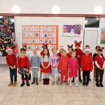 Hol škole je bio ispunjen dječijim osmjesima,radošću i šarenim ukrasima,dok je miris praznične čarolije ispunjavao svaki kutak.